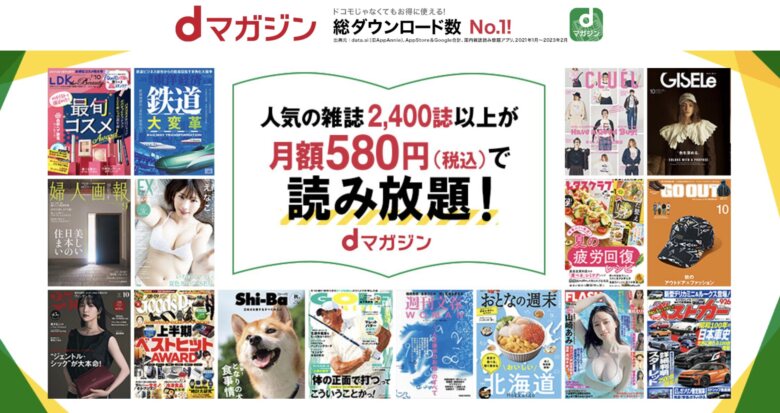 dマガジンは月額¥580で雑誌専門のサービスです。