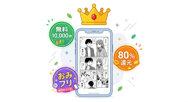 | 特徴 | 最大80%ポイント還元。漫画特化で独占・先行配信多数。毎月総額1億円相当の割引を実施 |