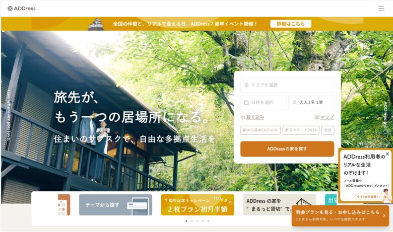 全国の「住まい」に定額で滞在できる住まいサブスク「ADDress」