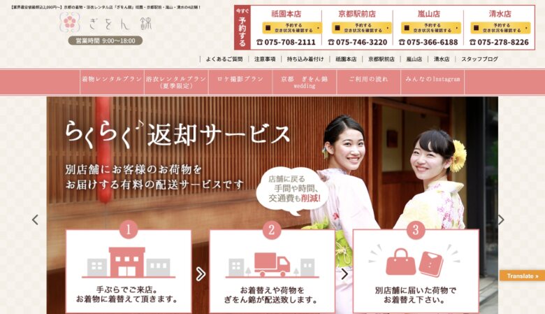 清水寺や祇園など観光に便利な立地に店舗が多く、着替えた直後から京都らしい雰囲気に浸ることができるのも魅力の一つです。
