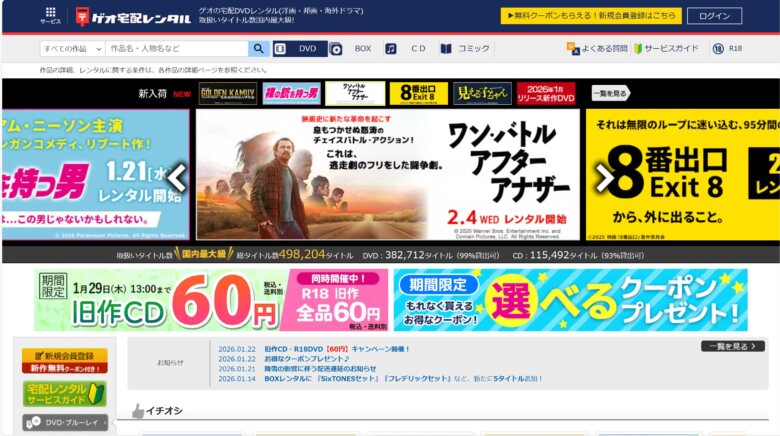 今なら旧作が60円からレンタル可能な「ゲオ宅配レンタル」。