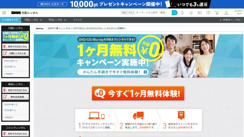 | サービス名 | DMM.com宅配レンタル(月額レンタル) |