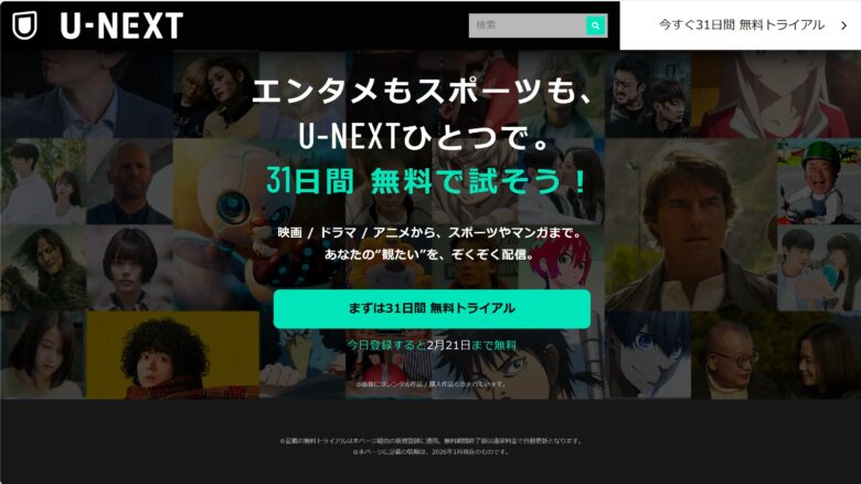 U-NEXT:27万本以上の映画・ドラマ・アニメが31日間無料+毎月1,200ポイント付与で新作レンタルもお得。家族4人まで同時視聴&雑誌読み放題付き!