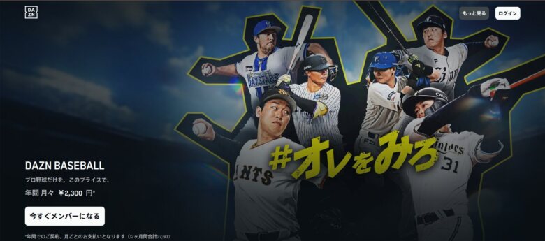 ただし、年間契約27,600円の月額払いで、中途解約ができないため注意が必要です。しかし、総合的に契約して損のないサブスクのため、野球ファンにはおすすめです。