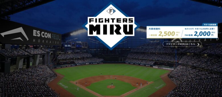 | 11位 | FIGHTERS MIRU | 一般会員 2,500円 FAV会員 2,000円 | なし | 北海道日本 ハムファイターズ | あり | HD〜フルHD スマホ/PC対応 | 月単位で解約可 | 日ハム独自コンテンツが豊富 |