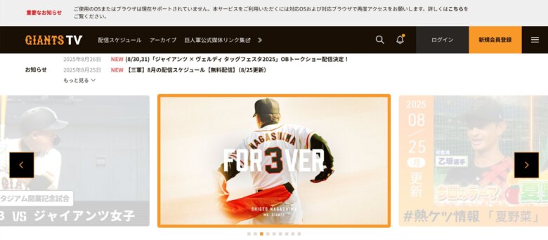 試合時間に合わせてリアルタイムで観られないことも多いため、見逃し配信の有無は重要です。