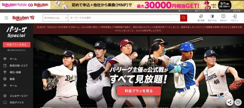 楽天モバイル契約者なら追加料金なしで利用可能。コストを抑えつつパ・リーグ全試合を楽しめる、ファンにとって嬉しい特典です。