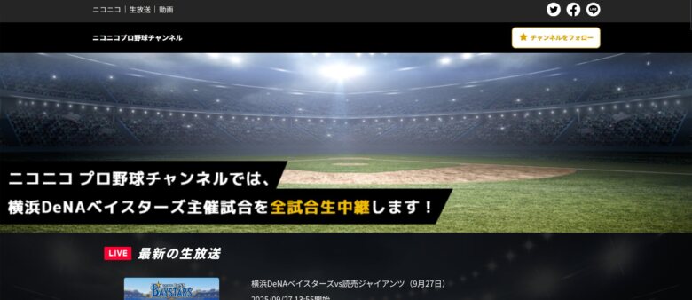 | 16 位 | ニコニコプロ野球チャンネル | 無料プランあり プレミアム会員 550円 | なし | 横浜DeNAベイスターズ主催試合 | プレミアム会員のみ | SD〜HD スマホ/タブレット/PC(TVはミラーリング等) | 月単位で解約可 | コメント機能で視聴が盛り上がる 追っかけ再生可能 |