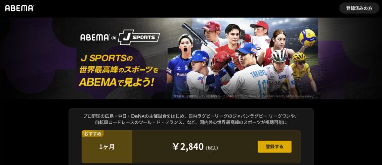 | 18 位 | ABEMA de J SPORTS | 2,840円〜 | なし | 中日、広島、横浜DeNAの J SPORTS対応球団 | あり | フルHD スマホ/タブレット/PC/TV(ABEMAアプリ) | 月単位で解約可 | ABEMAアプリで手軽に視聴 生配信でコメントしながら皆で楽しめる |