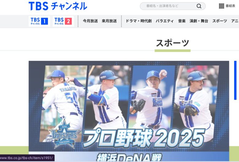 | 21 位 | TBSチャンネル2(CS) | 視聴方法によって異なる | なし | 横浜DeNAベイスターズ | なし | フルHD中心(放送) TV(CS) | 月単位で解約可 | アニメやTBSエンタメ番組も視聴可能 |