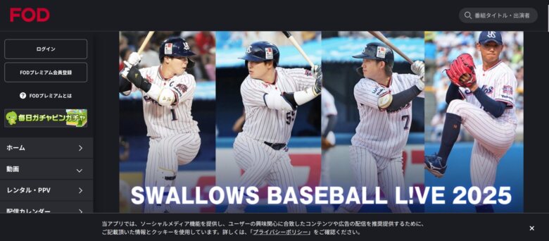 東京ヤクルトスワローズを中心に試合を扱っており、テレビがなくても視聴できるのが大きなメリット。野球だけでなく番組ラインナップも豊富なので、「ヤクルト戦を見たい」「フジ系列のエンタメも楽しみたい」という方に向いています。