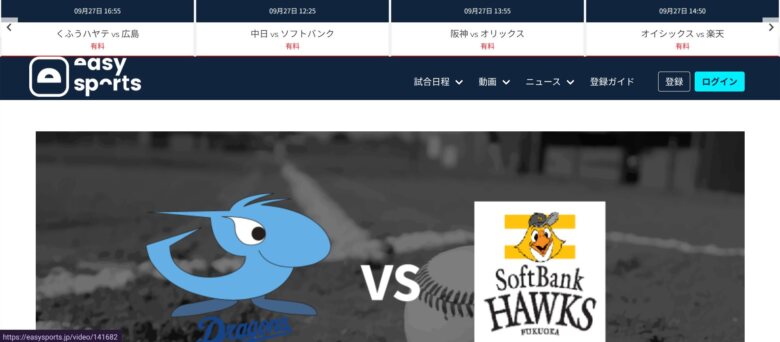 | 19 位 | イージースポーツ | 2,750円 | なし | 中日、広島、横浜DeNAの J SPORTS対応球団 | あり | フルHD スマホ/タブレット/PC/TV | 月単位で解約可 | ファーム公式戦のライブ配信ほか、スペシャル動画も視聴可能 |