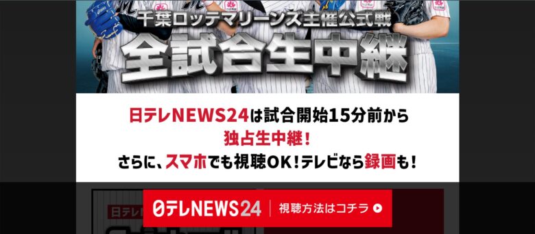 ニュース専門チャンネルながら千葉ロッテマリーンズ戦の一部中継を配信しています。