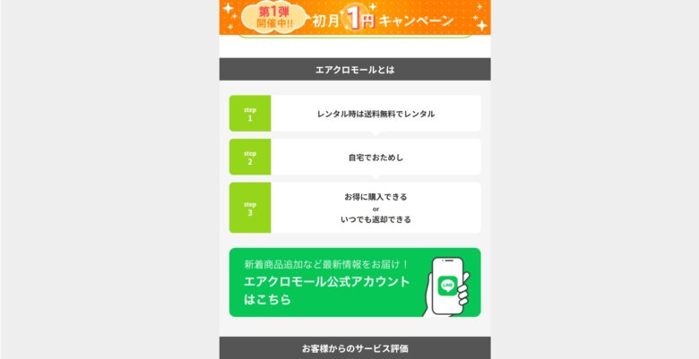 商品を試してから購入か返却か決められるメーカー公認月額制レンタルモール、エアクロモール。