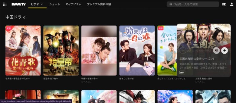 • 完全無料で24時間365日中国ドラマが視聴できる