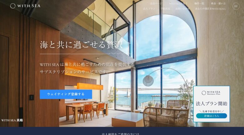 WITH SEAは、月額55,000円で全国の海辺の別荘を利用できる定額制サブスクリプションサービス。